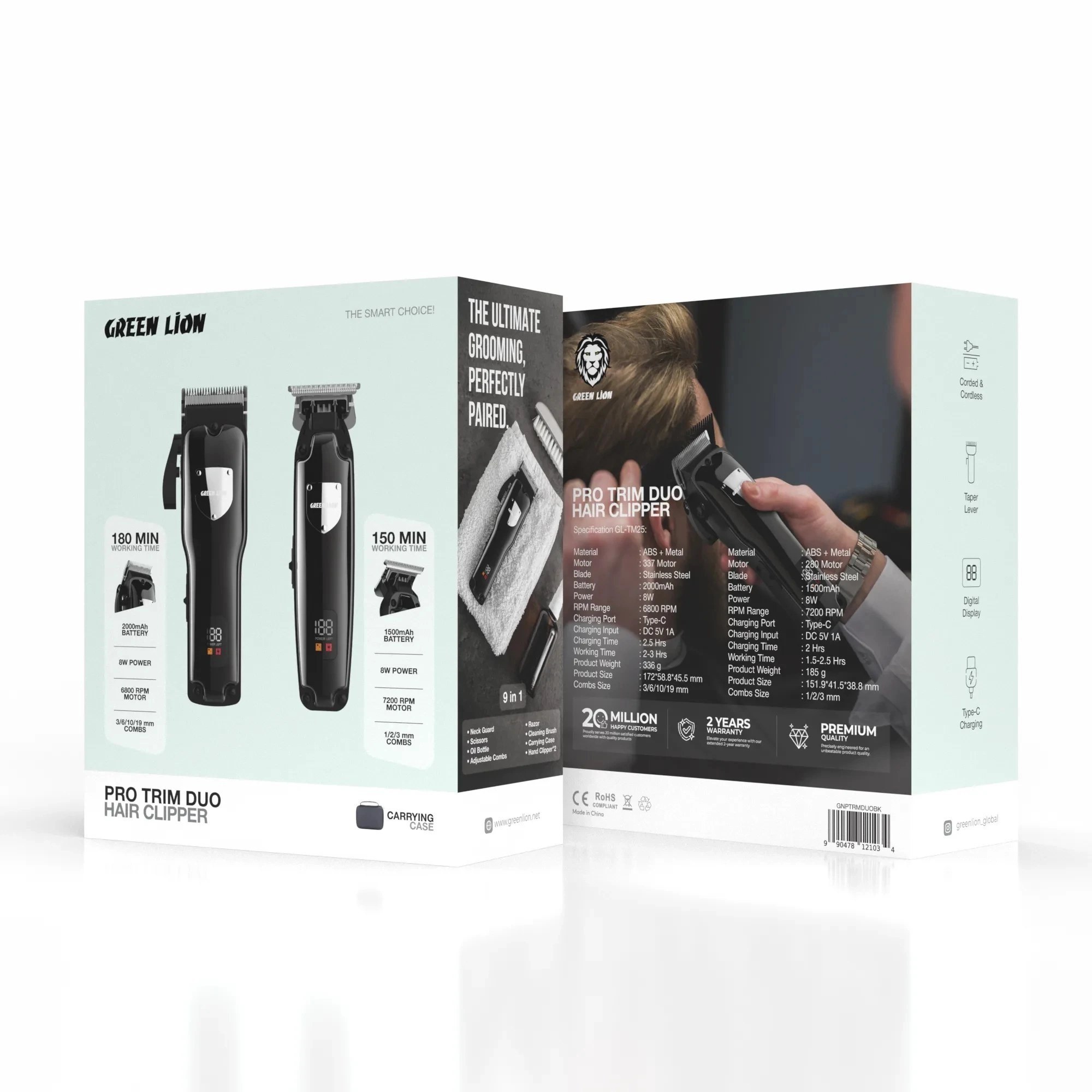 ماشین اصلاح مردانه گرین لاین مدل PRO TRIM DUO مشکی دوتایی و تیغه استیل ضد زنگ