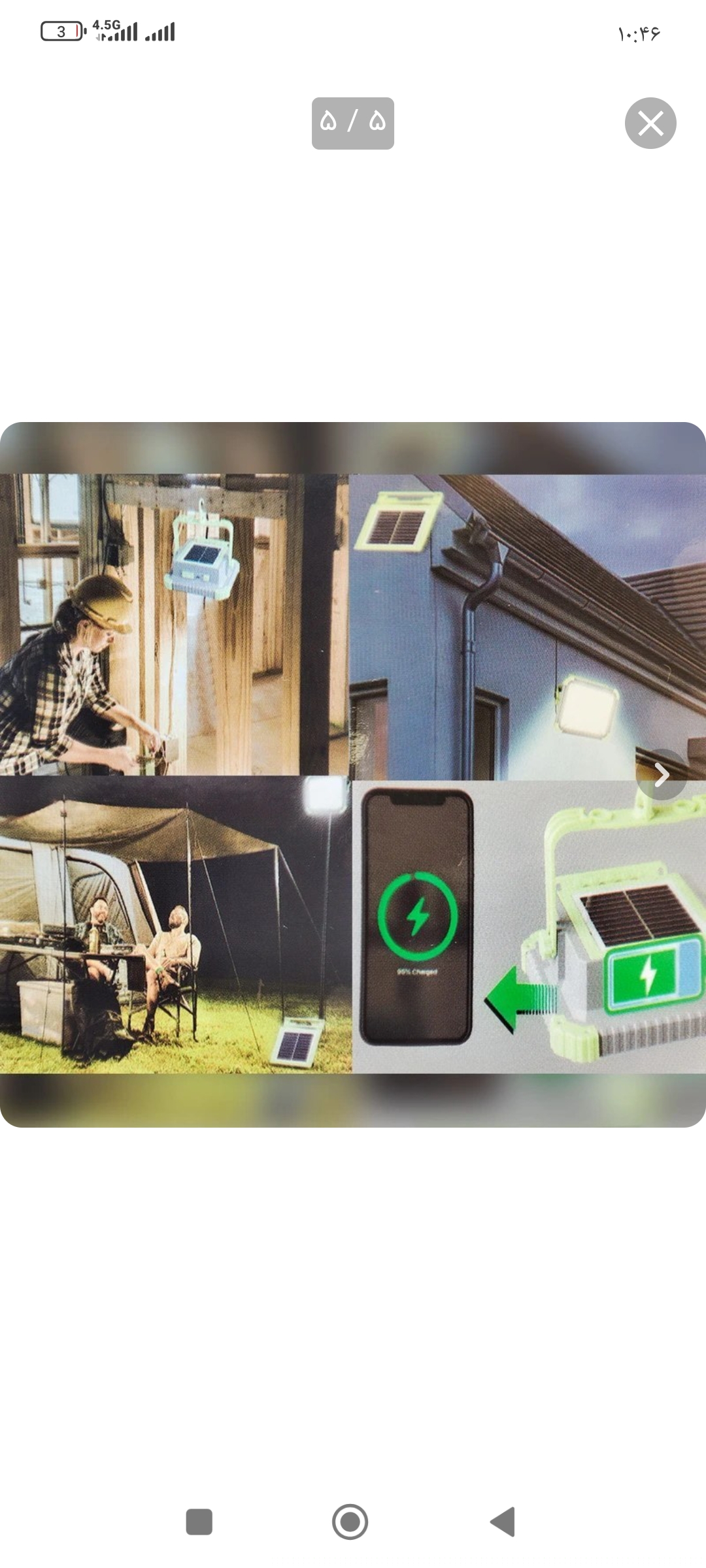 ویژگیها پنل خورشیدی جداشونده ۳ متری، ریموت کنترل، پاوربانک USB، ۵ حالت نوری (عادی، چشمکزن، SOS)