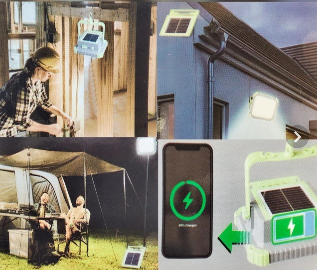 پرژکتور شارژی با پنل خورشیدی JLP-2192 رنگ مهتابی با پنل جداشونده وریموت با خروجی پاوربانک
