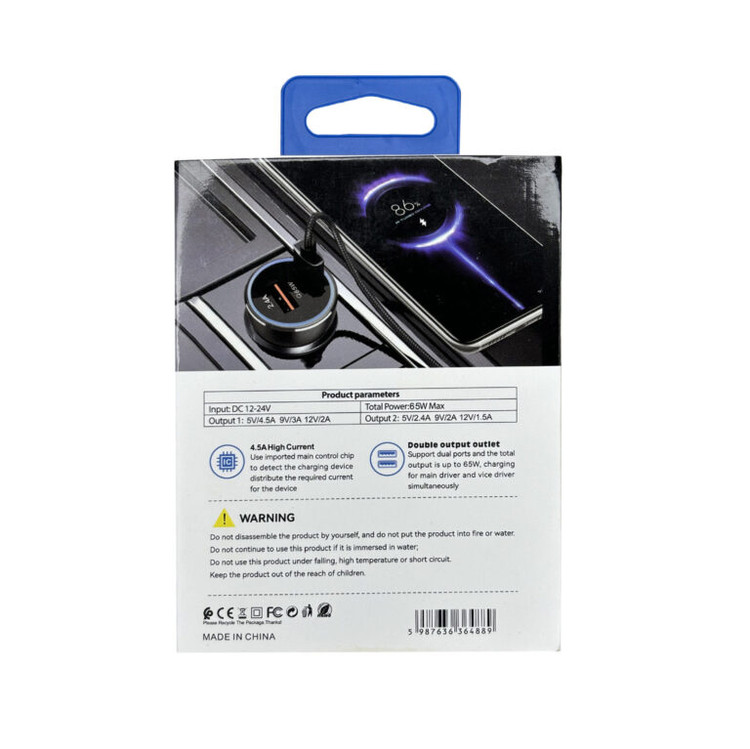 شارژر فندکی فست شارژ تریکت مدل TC-1024 توان 65 وات