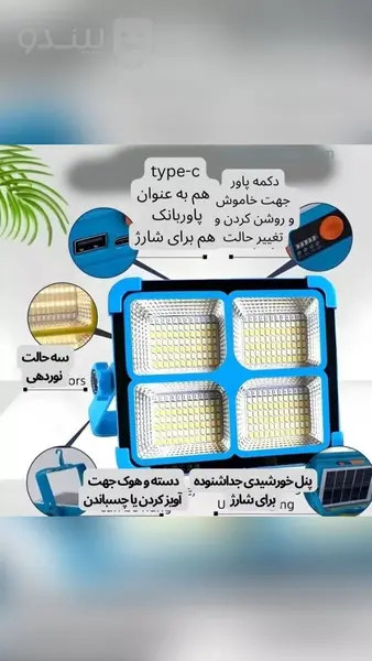 پرژکتورشارژی 200 وات باپنل خورشیدی مدل solar lighting YK-918 سایز بزرگ